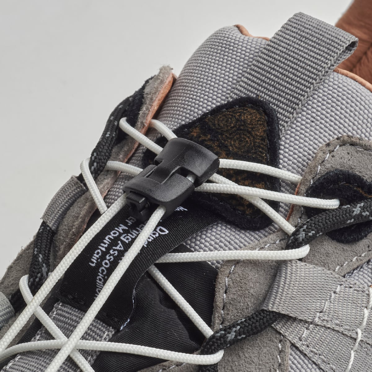 アウトドアシーンで信頼を得てきた“IWANO”の性能を受け継ぎつつ、よりスピーディーかつ確実なフィット感を実現するために、シューレースを“クイックレース”仕様へとアップデート。機能性と快適性を両立し、進化を遂げた次世代モデル“IWANO 2”。