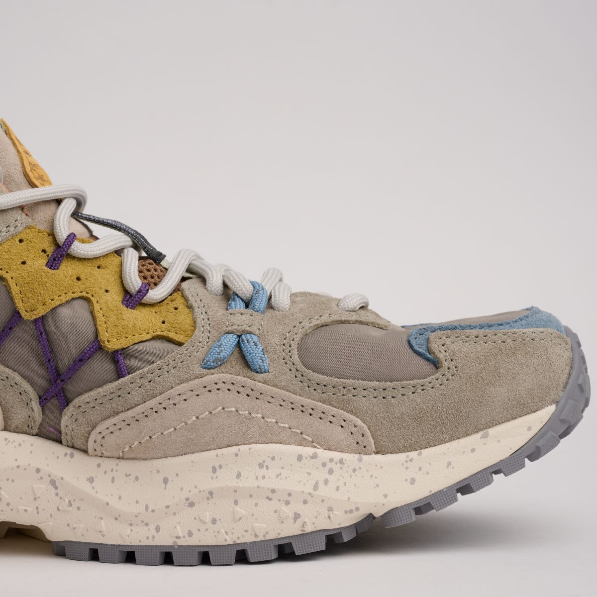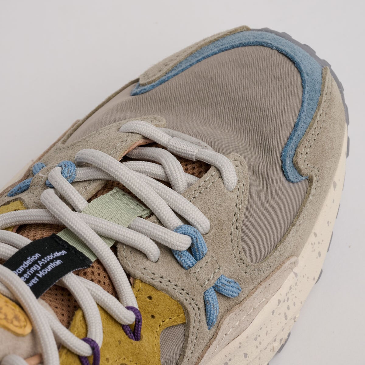 淡いグレーのコンビネーションにペールイエローのアイレットステイとベイビーブルーのサイドレースでシンプルながら遊び心のあるカラーリング。