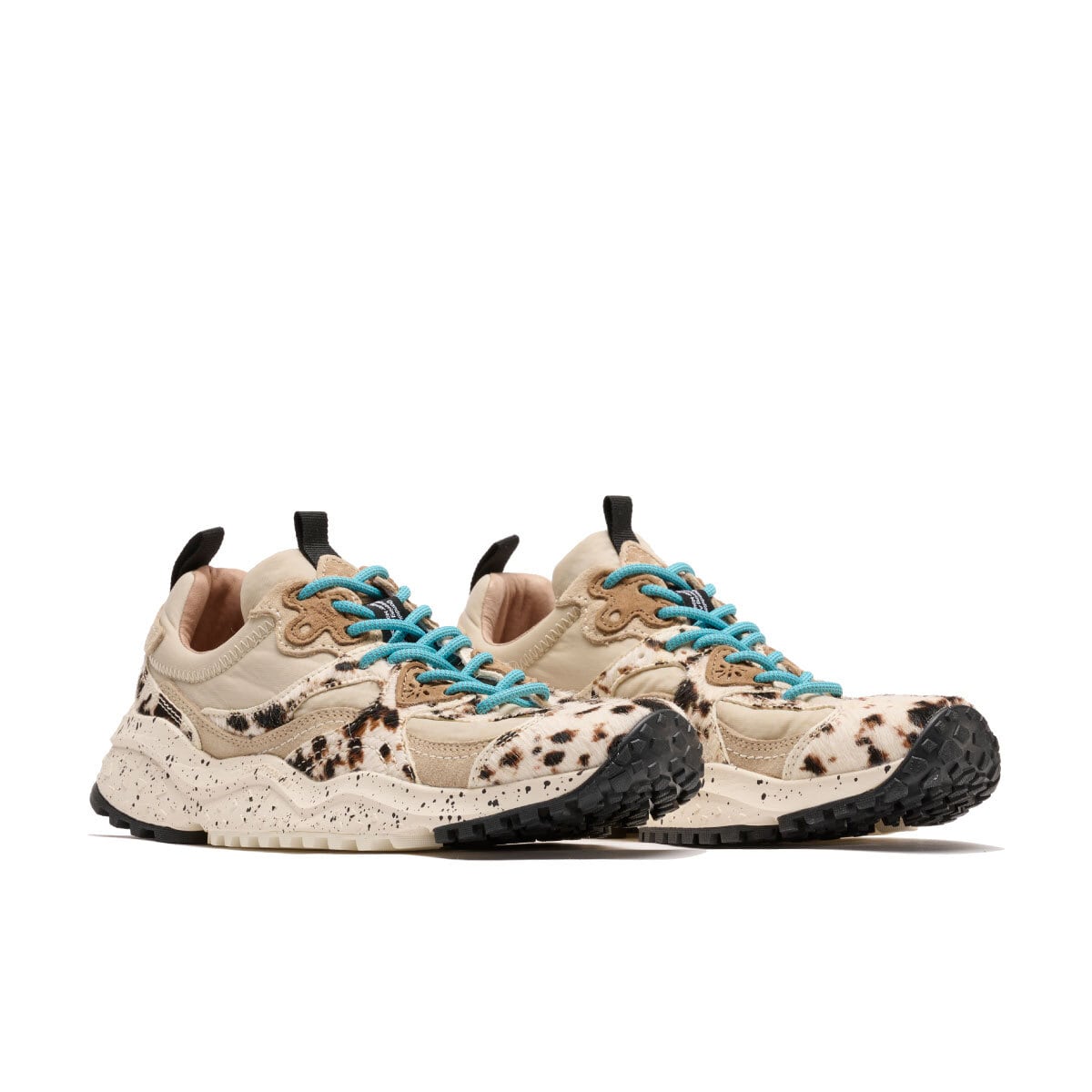 ベージュ系のグラデーションをベースに、アニマル柄のオーバーレイを組み合わせ、シューレースには発色の良いブルーを採用。スタイリッシュな趣を備えた仕上がりとなっている。