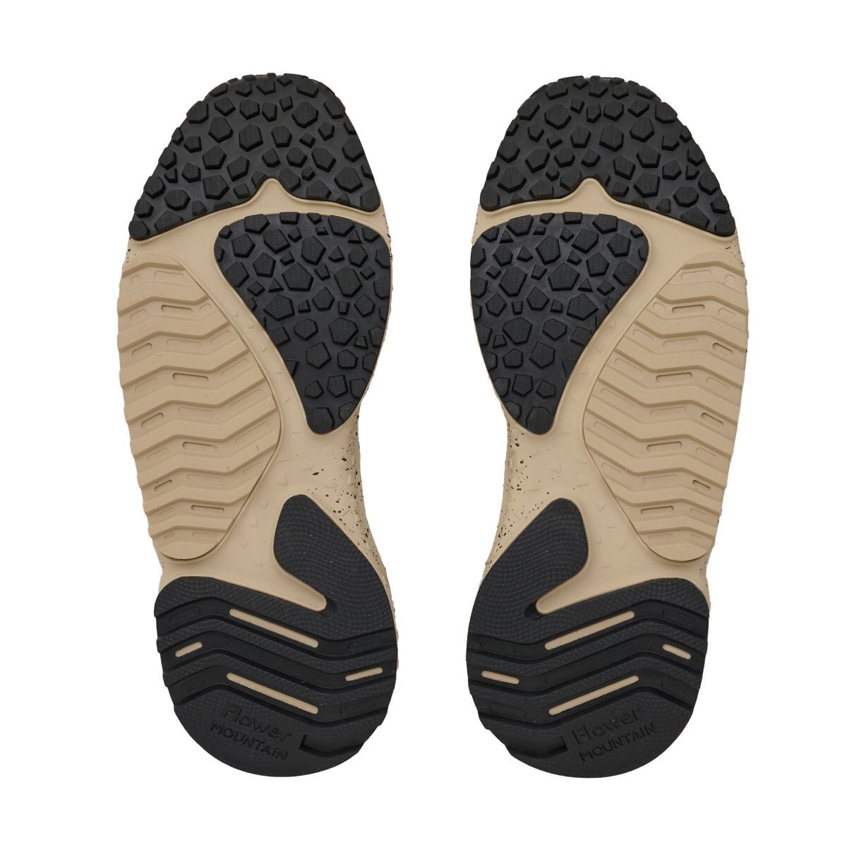 6つのレイヤーが重なり合う構造による、波が持つ生命力とリズムの表現。耐久性に優れたレザー製オーバーレイによる、歩行時の足のブレを抑える安定性と柔らかく軽量なナイロンのアンダーレイによる、軽量性と高いフィット感。動きに寄り添う設計が生み出す、抜群の快適さをもつ一足。