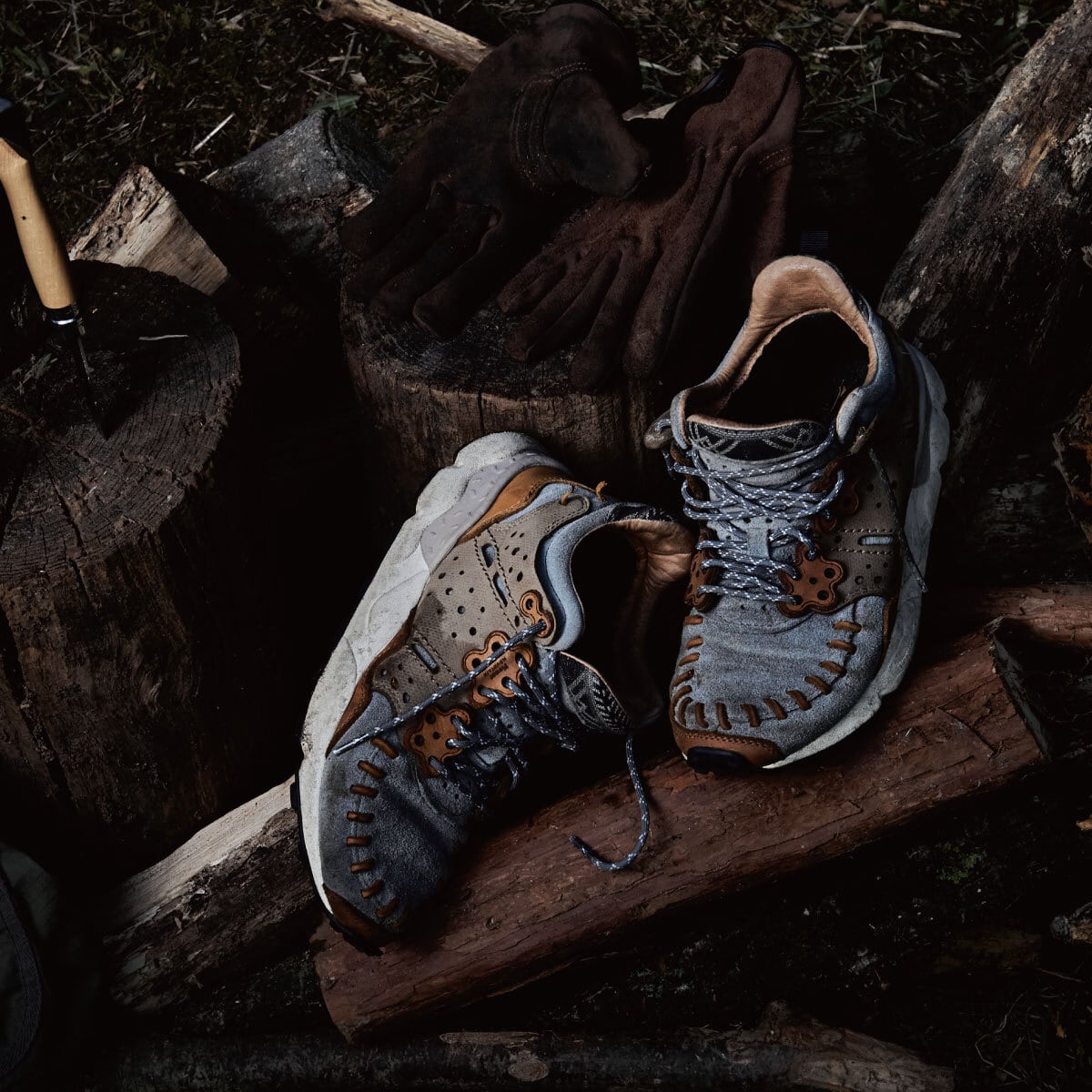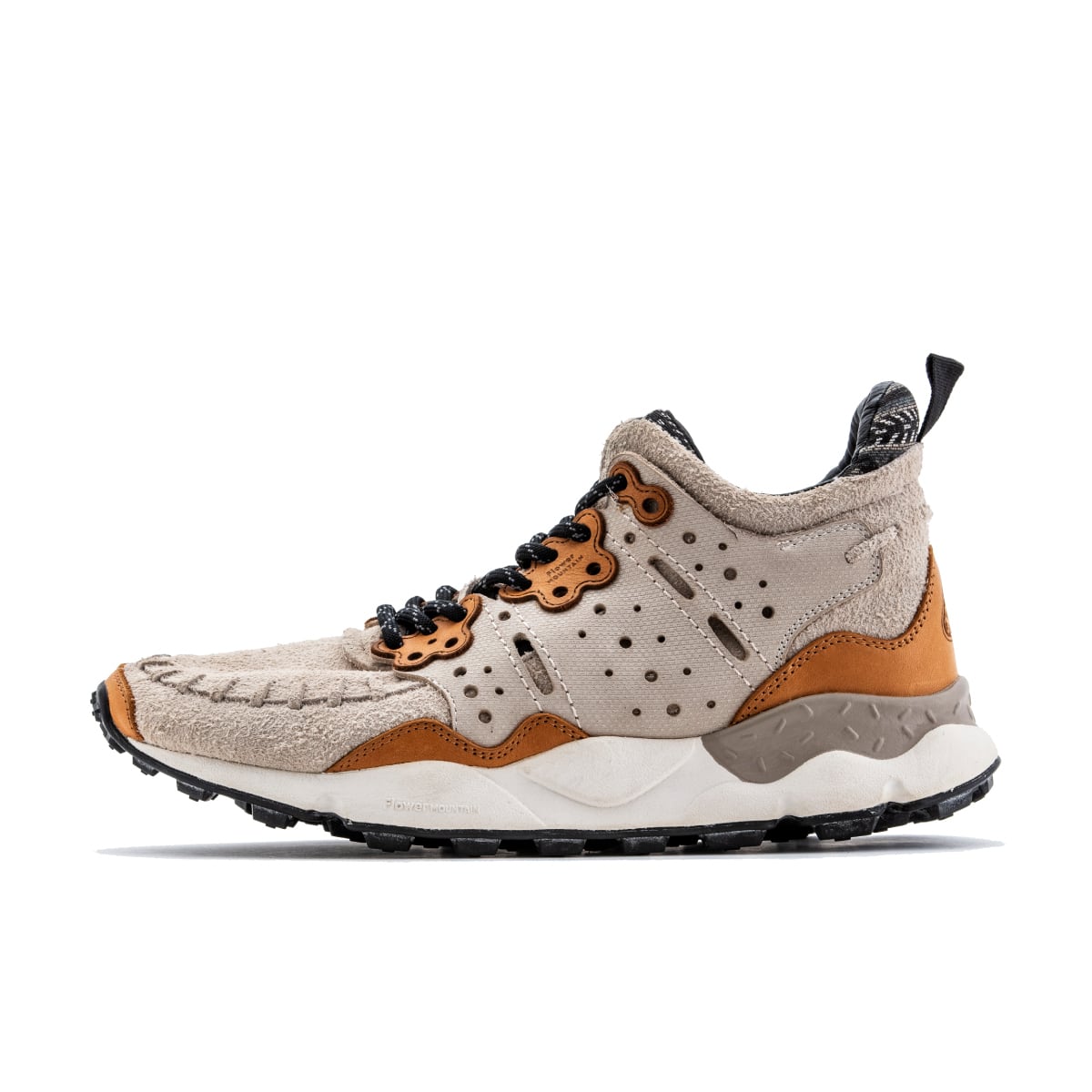 Flower MOUNTAINのデビューから継承されるブランドを代表するモデル。 ハンドメイドによるレザーストラップのモカシンや飾り穴の工作加工、自然をモチーフとした有機的なデザインディティールがバランスよく取り入れられブランドのコンセプトが体現されている。 今シーズンもブランドの旗手としてデビュー時と同じカラー・仕様を引き継ぎ継続展開。フラワーマウンテンの原点と言える1足。
